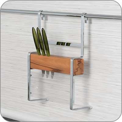 —Держатель S-4101 (Хром) для ножей с деревянной вставкой, на рейлинг 280*115*385